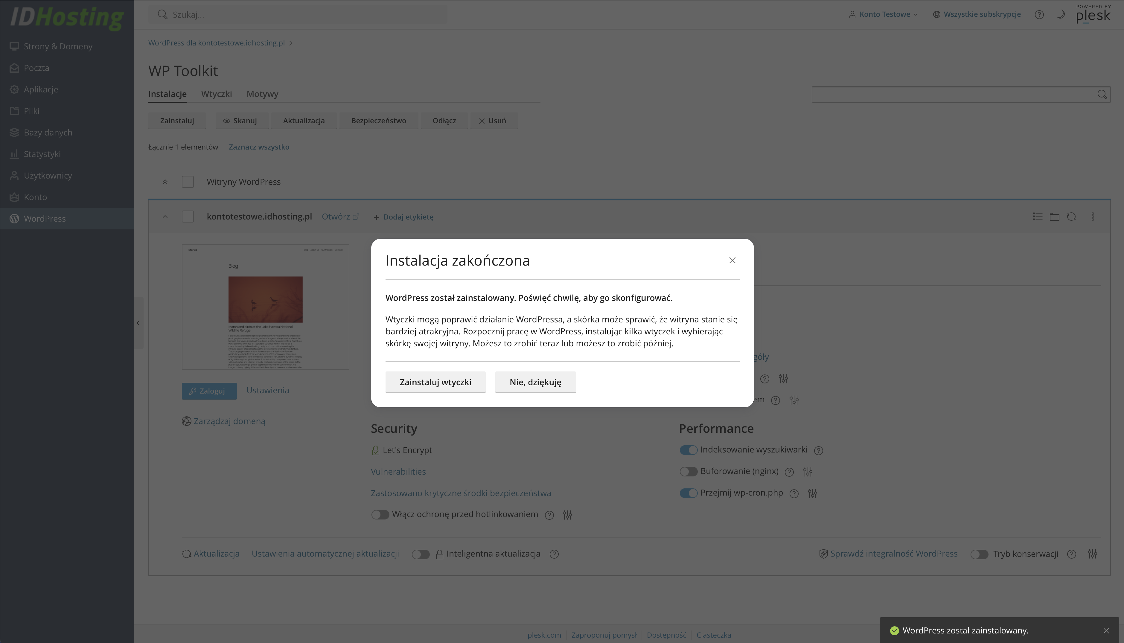 Wordpress Tookit w panelu Plesk